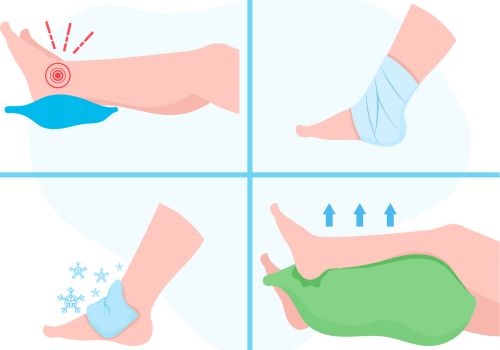 4. Elevation – czyli podnieś uraz powyżej poziomu serca. Uniesienie wspomaga krążenie krwi, co likwiduje obrzęku i bólu.